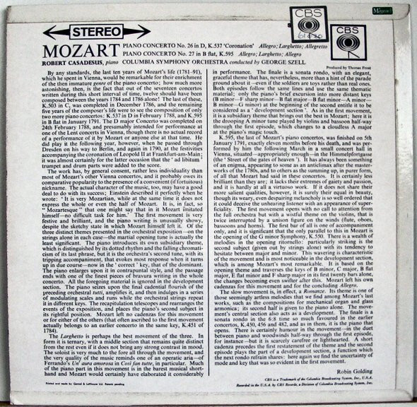 Title: Wolfgang Amadeus Mozart / Robert Casadesus / George Szell / Columbia Symphony Orchestra Piano Concerto No. 26 In D Major "Coronation", Piano Concerto
